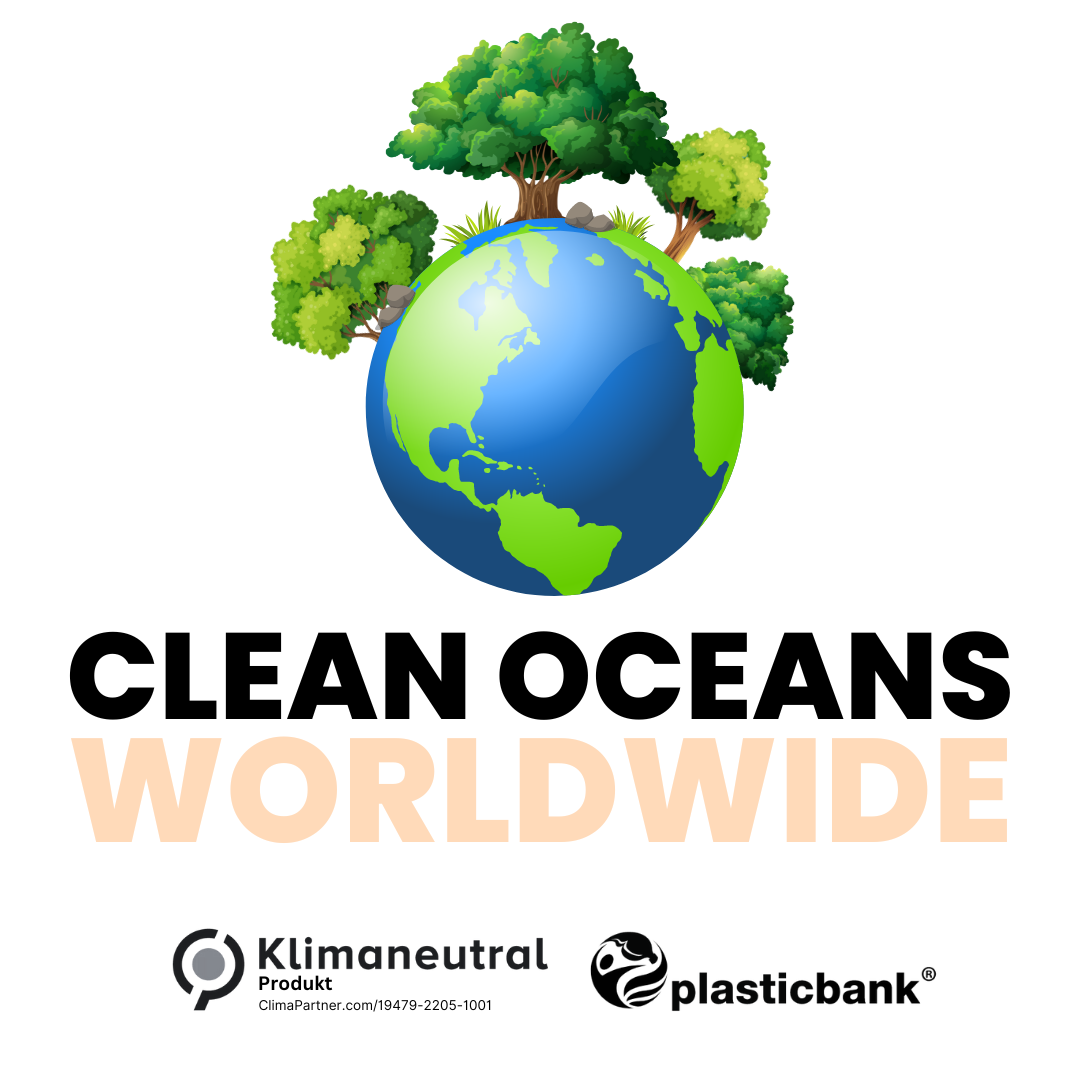Wir achten natürlich bei der Herstellung unserer Produkte auf unseren CO2-Fußabdruck. Mit Climate Partner gleichen wir bei jedem verkauften Produkt unsere CO2-Belastung aus und unterstützen hiermit das Projekt "Clean Oceans Worldwide" von PlasticBank®.